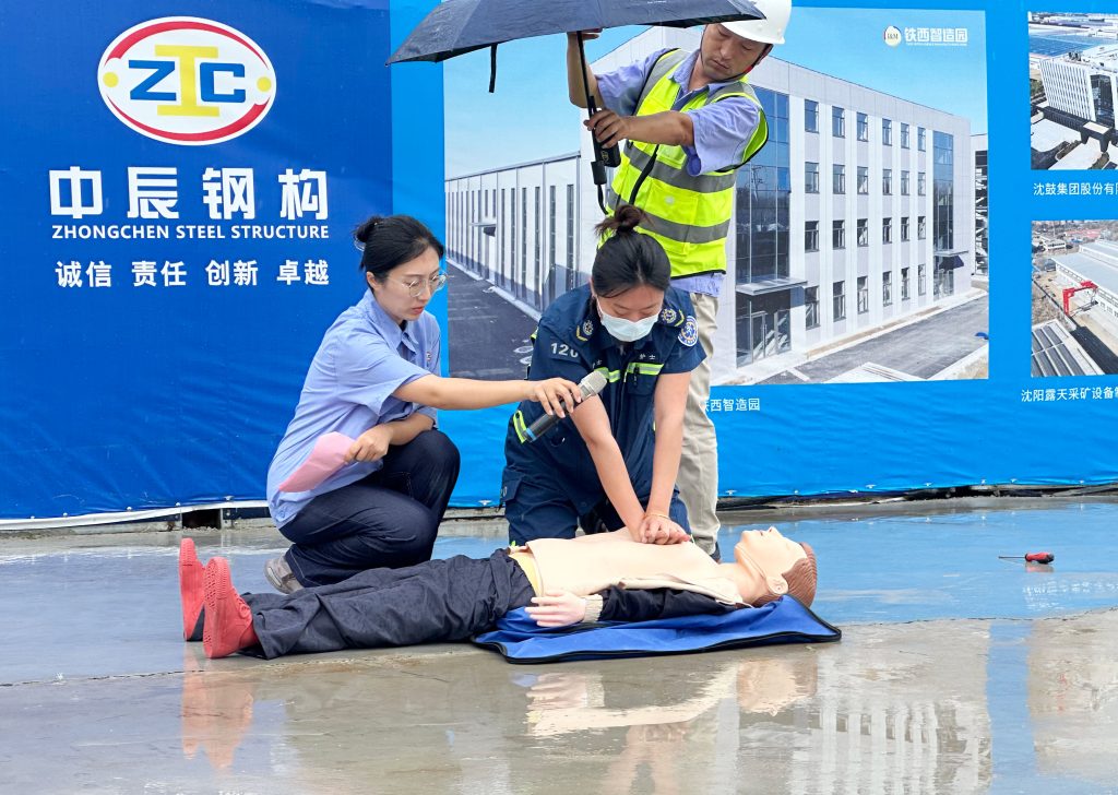 活動(dòng)現(xiàn)場(chǎng)展開了一場(chǎng)貼近實(shí)戰(zhàn)的 “觸電事故應(yīng)急處置演練” ,演練模擬施工現(xiàn)場(chǎng)突發(fā)觸電險(xiǎn)情,涵蓋事故報(bào)告、應(yīng)急響應(yīng)、現(xiàn)場(chǎng)警戒、事故救援、醫(yī)療救護(hù)等全流程。參演人員動(dòng)作規(guī)范、配合默契,通過標(biāo)準(zhǔn)化的處置流程演示,將觸電事故的科學(xué)應(yīng)對(duì)方法展現(xiàn)得淋漓盡致,不僅檢驗(yàn)了應(yīng)急預(yù)案的實(shí)操性,更有效提升了團(tuán)隊(duì)在緊急情況下的快速響應(yīng)、科學(xué)救援與協(xié)同作戰(zhàn)能力。沈陽市廣濟(jì)醫(yī)院急救團(tuán)隊(duì)親臨現(xiàn)場(chǎng),通過情景模擬,系統(tǒng)講解了觸電急救知識(shí),專業(yè)的醫(yī)療保障與互動(dòng)教學(xué),不僅讓安全生產(chǎn)知識(shí)入腦入心,更切實(shí)增強(qiáng)了企業(yè)應(yīng)對(duì)突發(fā)事故的醫(yī)療處置能力。