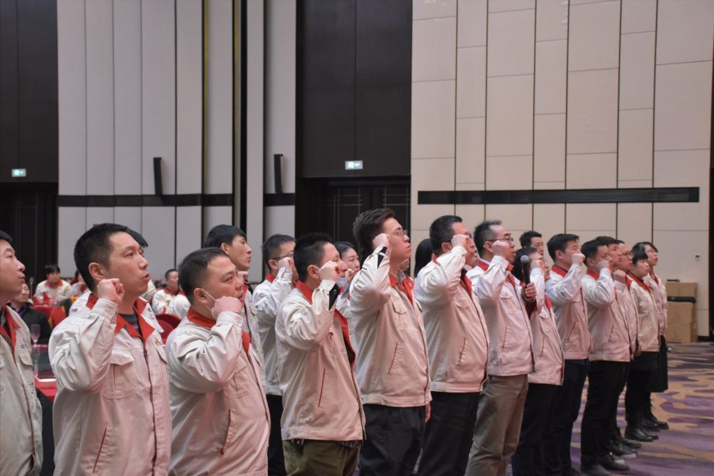 會議在一場莊嚴的宣誓下正式開始,所有中高層管理人員進行就職宣誓,決心要“以身作則、以上率下、言傳身教、躬身入局、修身律己、嚴格要求,不斷提高政治能力、調(diào)查研究、科學決策、改革攻堅、應急處突、群眾工作、抓落實這七項能力,按照年初制定的工作目標,保持謙虛謹慎、不驕不躁、艱苦奮斗的工作作風,絕不辜負公司的信任和員工的期望。”