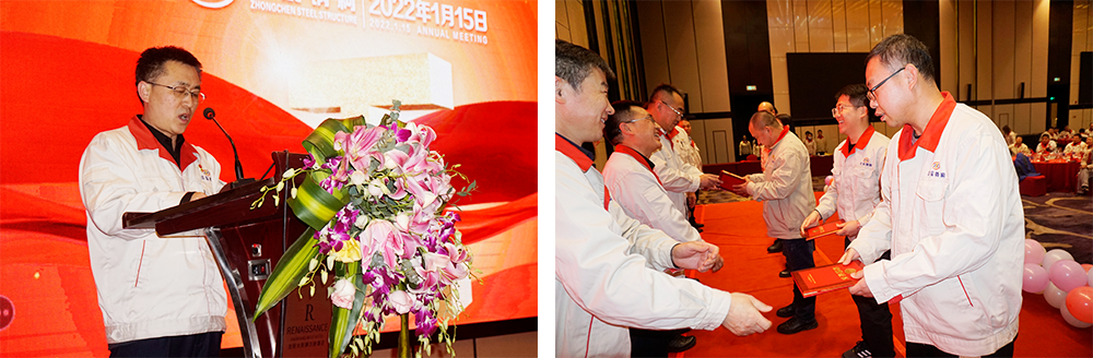 中辰19年走來,櫛風(fēng)沐雨、篳路藍(lán)縷。2021年,中辰承辦裝配式“鋼結(jié)構(gòu)+PC”建筑體系應(yīng)用推廣會(huì)、亮相第九屆“城博會(huì)”、參與編制國家標(biāo)準(zhǔn)《城市鋼結(jié)構(gòu)橋梁施工及質(zhì)量驗(yàn)收標(biāo)準(zhǔn)》、獲批9項(xiàng)專利,榮獲“全國就業(yè)與社會(huì)保障先進(jìn)民營企業(yè)”、“2020年沈陽市民營企業(yè)科技創(chuàng)新100強(qiáng)”、遼寧省綠色建筑技術(shù)與產(chǎn)品推廣應(yīng)用證書、中國建筑鋼結(jié)構(gòu)行業(yè)誠信企業(yè)、中國建筑金屬結(jié)構(gòu)協(xié)會(huì)“功勛會(huì)員”、“行業(yè)突出貢獻(xiàn)企業(yè)”和“抗疫模范單位”等一系列榮譽(yù)。榮譽(yù)的取得離不開每一名中辰員工的不懈奮斗,公司對(duì)2021年度表現(xiàn)突出的團(tuán)隊(duì)和個(gè)人進(jìn)行隆重的表彰,感謝他們?yōu)楣景l(fā)展做出的貢獻(xiàn),同時(shí)鼓勵(lì)全體員工向他們學(xué)習(xí),勇于革新、扎實(shí)工作、不計(jì)得失、埋頭苦干、立足崗位、擔(dān)當(dāng)作為,以嚴(yán)謹(jǐn)?shù)墓ぷ鲬B(tài)度、扎實(shí)的工作作風(fēng)和敢于人先的創(chuàng)新意識(shí),推動(dòng)中辰拾階而上,再創(chuàng)新功!