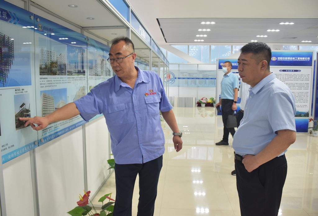 張文哲局長一行首先來到了中辰鋼構(gòu)的企業(yè)展廳,詳細(xì)了解了中辰鋼構(gòu)多年來的發(fā)展情況、取得的成績以及獲得的榮譽(yù),隨后來到了五樓會議室,為中辰鋼構(gòu)的高質(zhì)量發(fā)展出謀劃策。