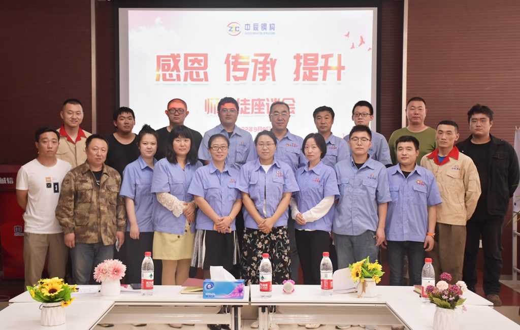 九月之初,桃李芬芳。在這片充滿深情的黑土地上,到處都是中辰人忙碌的身影,在廠區(qū)、橋梁、產(chǎn)業(yè)園,中辰人于細(xì)微處展現(xiàn)爐火純青的技藝;看設(shè)計(jì)、焊接、澆筑,中辰人在電與火之間傳遞精益求精的匠心。時(shí)代發(fā)展,企業(yè)前行,都離不開傳承,恰逢教師節(jié)來臨之際,中辰鋼構(gòu)于9月9日下午,在公司一樓職工之家召開了以“感恩 傳承 提升”為主題的師徒座談會(huì),10余名新入職的員工與他們的師傅共坐一堂,篤揮胸墨,薪火相傳。