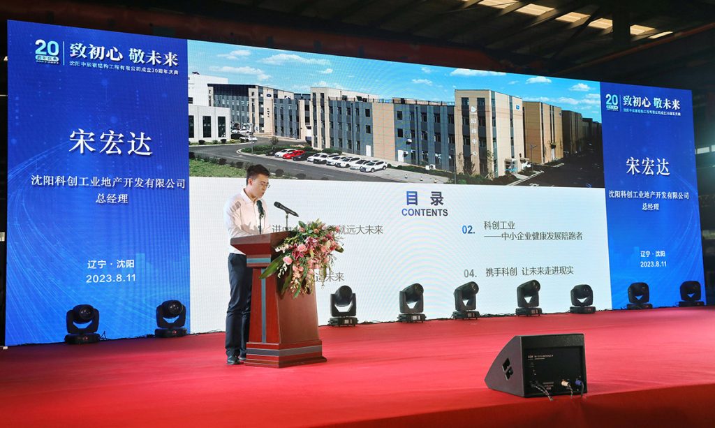 沈陽科創(chuàng)工業(yè)地產總經理宋宏達作《科創(chuàng)工業(yè)——中小企業(yè)健康發(fā)展陪跑者》主題報告,贏得現(xiàn)場掌聲陣陣。