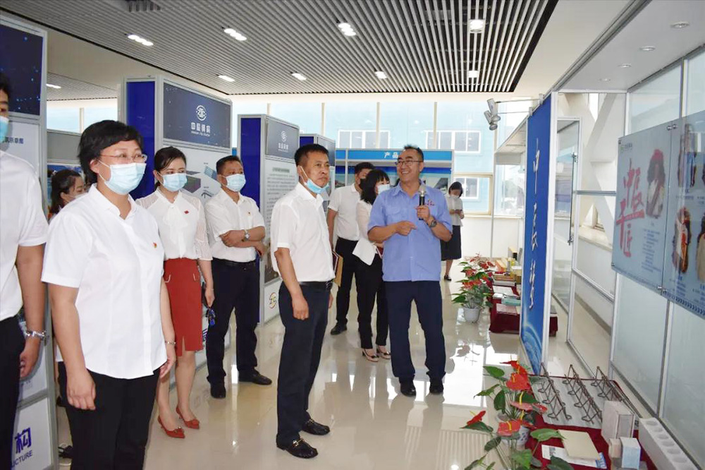 在黨建文化長廊和黨委會議室,杜書記一行參觀了企業(yè)黨建掠影、五大革命精神、企業(yè)內(nèi)刊《中辰之聲》及黨委會議室建設(shè)情況,并對中辰鋼構(gòu)黨建工作給予肯定。在講解中,劉健副書記分享到:中辰鋼構(gòu)由小到大,由弱到強的發(fā)展道路上,一直有黨組織支持和幫扶的身影。從創(chuàng)業(yè)之初的篳路藍(lán)縷,到如今發(fā)展轉(zhuǎn)型的攻堅克難,黨建的“軟實力”催生出了企業(yè)發(fā)展的“硬實力”,黨組織成為助推企業(yè)發(fā)展的“引擎”?!拔宕蟾锩瘛钡纳羁虄?nèi)涵,是我們企業(yè)經(jīng)營管理中不可或缺的精神,也是每一名中辰人必須具備的優(yōu)秀品質(zhì)。