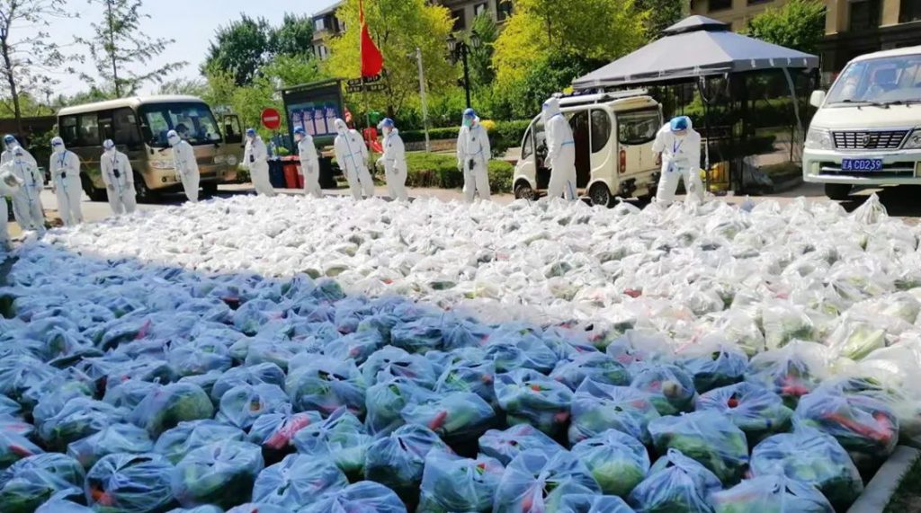 5月16日,區(qū)委、區(qū)政府要為園區(qū)所有居民發(fā)放愛心蔬菜包,中辰鋼構志愿者聞令而動,全員投入,卸車、清點、裝車、運輸,僅用了一下午時間,就將蔬菜全部送到守樓員手中及業(yè)主手中,讓封控在家的居民感受到溫暖和愛。