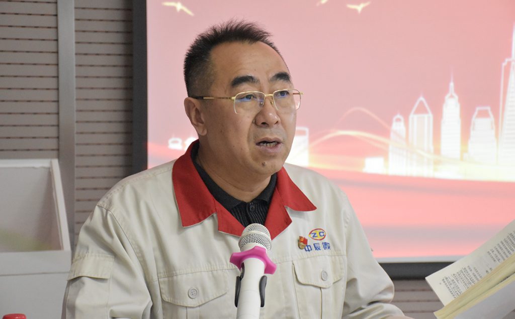 學(xué)習(xí)會(huì)議第一項(xiàng):中辰鋼構(gòu)黨委委員、總經(jīng)理盧兆會(huì)帶領(lǐng)大家共同學(xué)習(xí)二十大報(bào)告第一部分——過(guò)去五年的工作和新時(shí)代十年的偉大變革。